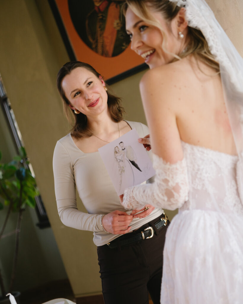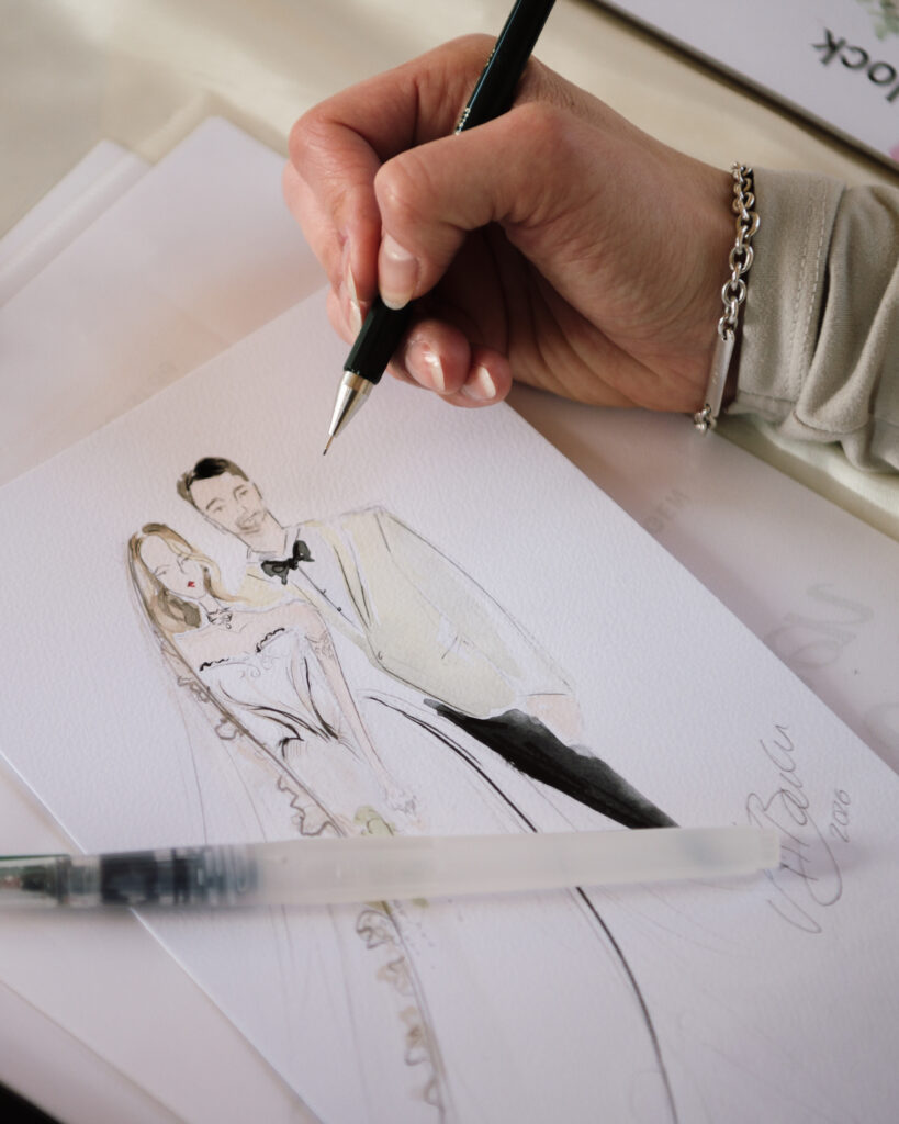 Persönliche Wertschätzung: Jede Illustration fängt die individuelle Ausstrahlung und das Outfit eurer Gäste in wenigen Minuten ein.